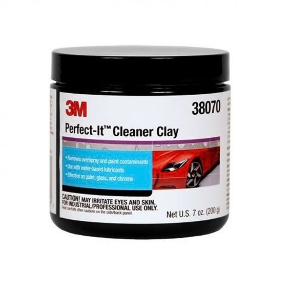 Το 3M Perfect-It Cleaner Clay είναι μια πάστα που αφαιρεί από βαμμένες επιφάνειες ρύπους, όπως π.χ. ακαθαρσίες πουλιών, που μπορεί να αλλοιώσουν την βαφή και το βερνίκι. Κατάλληλο επίσης και για την αφαίρεση άχνας μετά τη βαφή με πιστόλι. Μπορεί να χρησιμοποιηθεί σε χρώματα, γυαλί και χρωμιομένες επιφάνειες επαναφέροντας την αρχική στιλπνότητα.