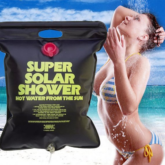Η ηλιακή ντουζιέρα είναι ένας ανθεκτικός, μαύρος πλαστικός σάκος από PVC χωρητικότητας 20 λίτρων νερού, το οποίο ζεσταίνει με χρήση της ηλιακής ενέργειας.
