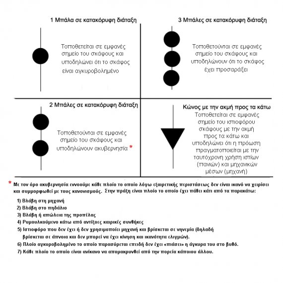 Οπτικό σήμα που χρησιμοποιείται κατά τη διάρκεια της ημέρας από ιστιοφόρα πλοία και δηλώνει την ταυτόχρονη χρήση ιστίων και μηχανής για την πρόωσή του .