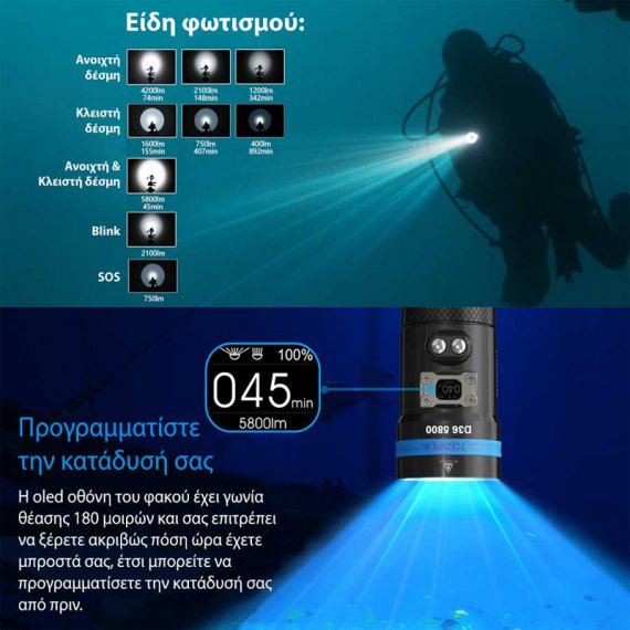 • Μέγιστη διάρκεια λειτουργίας στα 5800lm, 45 λεπτά