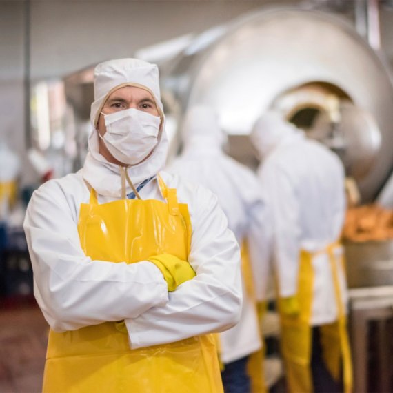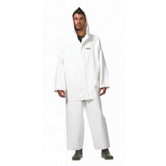 Ελαφρύ σακάκι με κουκούλα, κατάλληλο για επεξεργασία τροφίμων, εσωτερικό κορδόνι, κλείσιμο με πλαστικό φερμουάρ και Velcro κλείσιμο στο λαιμό. Ύφασμα: PVC / Polyester 330gr/m², ανθεκτικό σε φυτικά και ζωικά λίπη. Με πιστοποίηση CE.