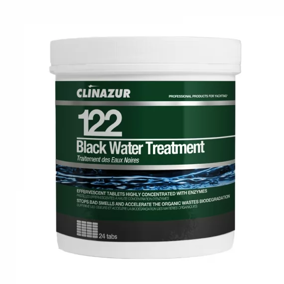 Το Clinazur 122 Black Water Treatment είναι αναβράζοντα δισκία που περιέχουν ευεργετικούς μικροοργανισμούς και ένζυμα. Εξαφανίζει πολύ γρήγορα τις οσμές και επιταχύνει τη βιοαποικοδόμηση του οργανικού υλικού στις δεξαμενές ακαθάρτων. Συνίσταται η τακτική χρήση του 1 φορά την εβδομάδα.