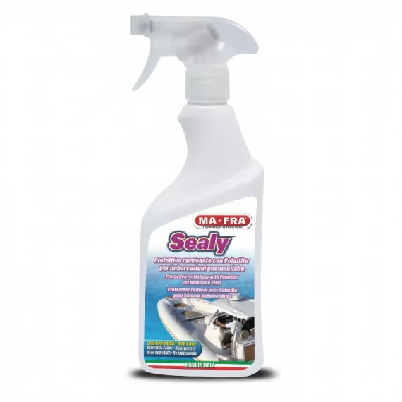 Το SEALY είναι ένα συμπυκνωμένο επαγγελματικό προϊόν, από την ναυτική σειρά τις MA-FRA, που προστατεύει και γυαλίζει τα φουσκωτά με μια εφαρμογή. Η ισορροπημένη του σύνθεση με POLARLITE®, το βασικό δραστικό συστατικό, επιτρέπει την αναβίωση, τον καθαρισμό και την προστασία των αεροθαλάμων των φουσκωτών με ένα πέρασμα. Το αδιαβροχοποιητικό στοιχείο του διαλύει την βρωμιά και δεν κολλά στο ύφασμα διευκολύνοντας έτσι το πλύσιμο και τους χειρισμούς κατά την αγκυροβολία. Χάρη στο POLARLITE® το SEALY προστατεύει το ύφασμα αναστέλλοντας την πρόωρη γήρανση του και το κιτρίνισμα. Η ενυδατική και γυαλιστική του δράση διατηρεί το ύφασμα απαλό και ελαστικό κάνοντας το φουσκωτό να δείχνει σαν καινούριο. Συχνή χρήση του SEALY επιτρέπει στο φουσκωτό να παραμείνει σαν νέο για περισσότερο μειώνοντας κατά πολύ τα σημάδια φθοράς που προέρχονται από την βρωμιά, τον ήλιο και το αλάτι.