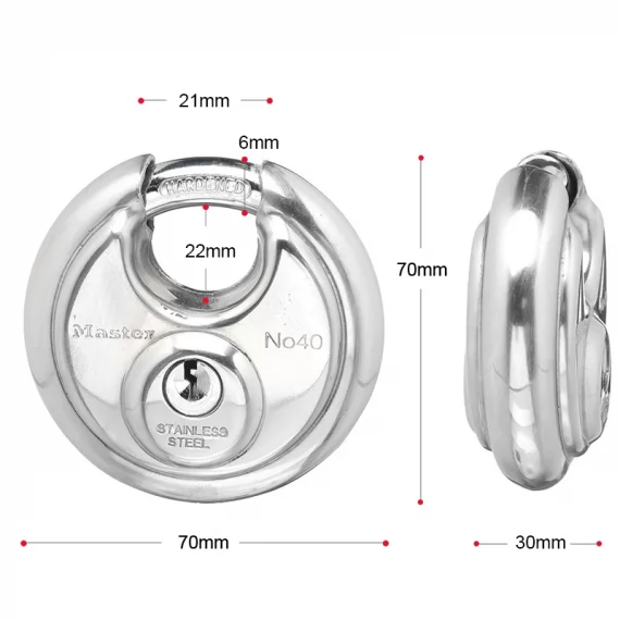 Λουκέτο με φαρδύ σώμα (Ø70mm) από ανοξείδωτο ατσάλι ανθεκτικό στη διάβρωση.