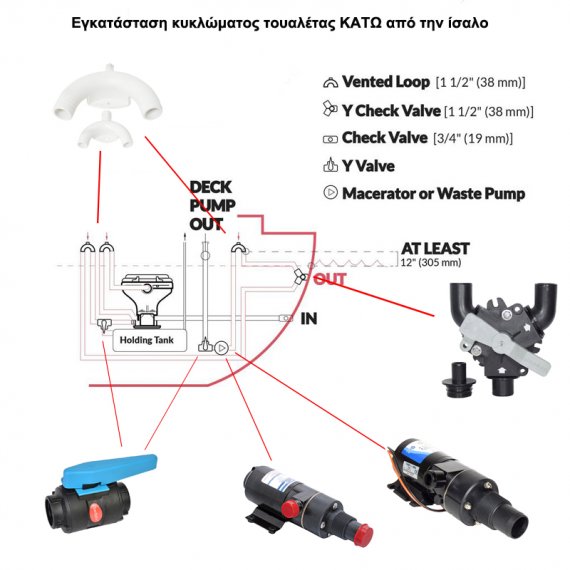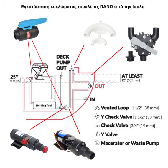 Αντλία Macerator για τη διάλυση και την εξαγωγή αποβλήτων από τις δεξαμενές ακαθάρτων του σκάφους. Μανομετρικό: 16ft / 5m
