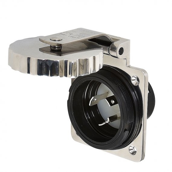 Πρίζες με αρσενικές μαχαιρωτές υποδοχές, για την τροφοδοσία των σκαφών με ρεύμα (inlet) κατά την διάρκεια του ελλιμενισμού. Ανοξείδωτες, με σύστημα ασφάλισης Easy Lock και καπάκι ασφαλείας στεγανότητας ΙΡ57.