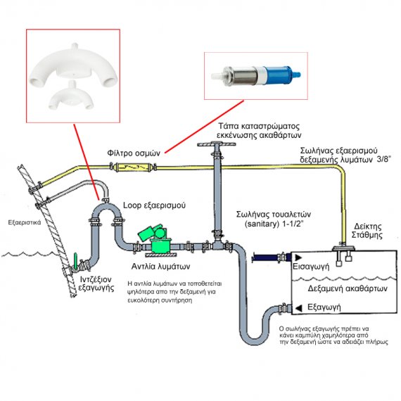 Καμπύλες εξαερισμού σωλήνων τουαλέτας (Loop) που χρησιμοποιούνται όταν οι τουαλέτες είναι τοποθετημένες κάτω από την ίσαλο.