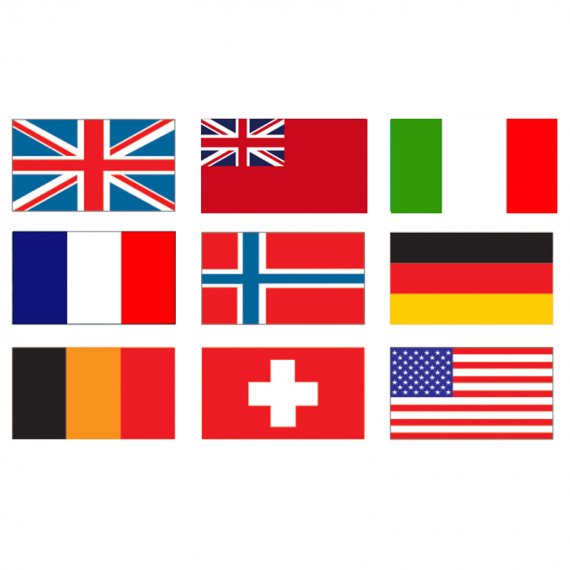 National flags of different countries made of polyester in dimensions from 40cm to 200cm.
