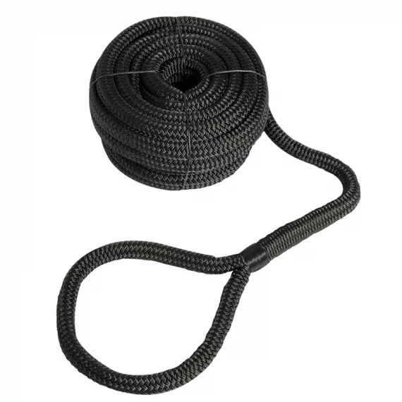 High tenacity polyester double braided mooring line. With hand-made spliced eye.