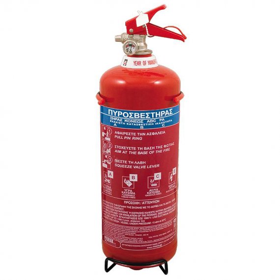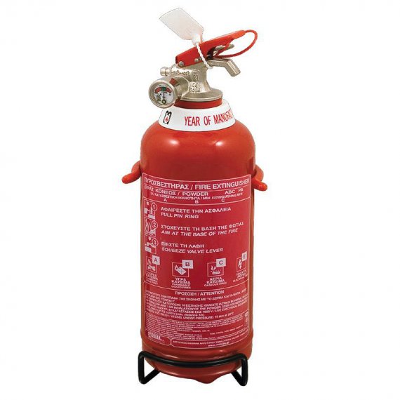 Dry powder fire extinguishers in steel canister. For use on solid, liquid and gas fuel as well as for electrical installation fires. (Type A, B, C, E)