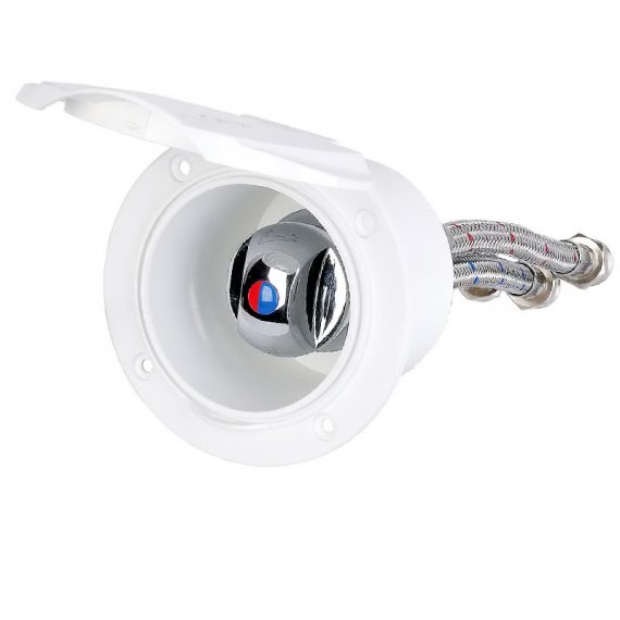 Flush installation in transom or deck only requires a Ø70 mm hole, easily done with a hole saw. The housing requires minimal depth for installation and accepts most existing shower heads.